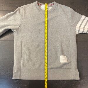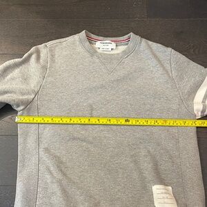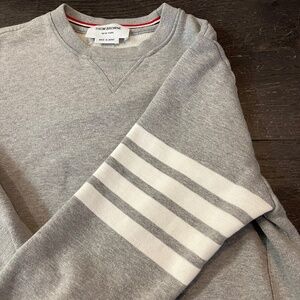 THOM BROWNE GREY COTTON STRIPED CREW NECK SWEATER SIZE 2