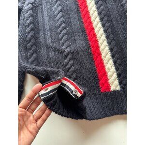 THOM BROWNE Navy Aran Merino Wool Cable Knit Crew Neck Pullover Sweater, Size 5