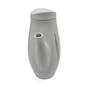 This rare 1960s Thomas coffee pot from Germany has sleek white porcelain adorned with delicate grass leaf patterns in subtle hues.