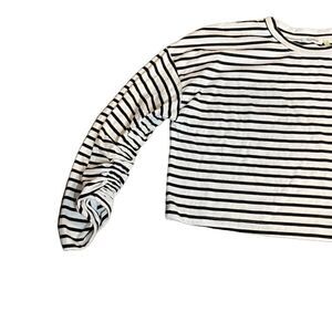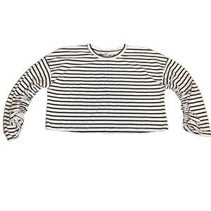 Thursdays Crop Top Size large Black and white stripes Long sleeve with cinched near elbow Oversized look Can fit up to 2xl depending on the desired look 10.
