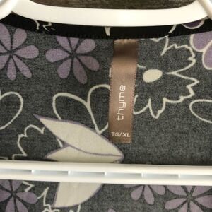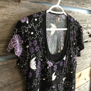 THYME Maternity size XL Black scoop neck top with purple flowers