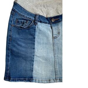 THYME LIGHT & Dark Wash Distressed Denim Skirt XS
