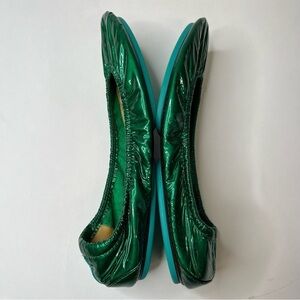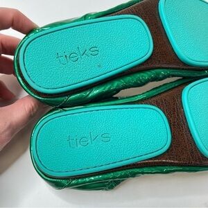 TIEKS by Gavrieli Emerald Green Metallic Shiny Patent Leather Ballet Fold Flats