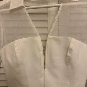 Barely worn, hook and clasp closure in front, faux boning, sheer mesh sleeves, collared, Australian brand.