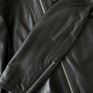 Please note: slight damage to the inside leather from zipper, and damage on left arm (both pictured)