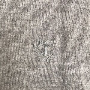 This Tiger of Sweden crewneck wool sweater is in good, pre-owned condition. It is a light stone grey colour (it appears darker in some of the photos due to changes in the lighting). Please see pics for approximate measurements.
