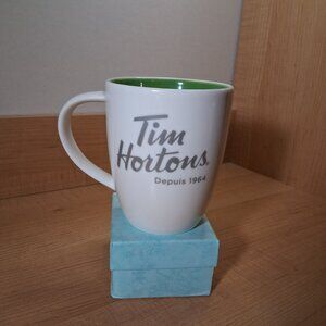 This Tim Hortons coffee mug is a must-have for any fan of the iconic Canadian coffee chain. Featuring the brand's logo and the year of its founding, this mug is a collector's item that celebrates the rich history of Tim Hortons.