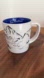 Tim Hortons mug is the limited edition from 2018 depicts mountains and skis. White with black mountains and blue skis. Blue interior.