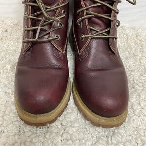Timberland Burgundy & Green Leather Lace Up Boots 6.5