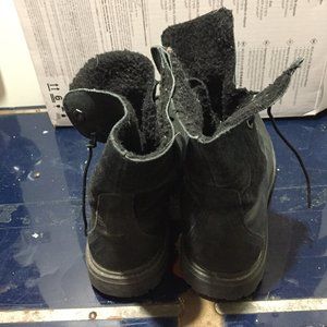 Timberland Leather Ankle Boots, Lightweight size 9, Color Black, Teddy Fleece Lining, Lace Up, Front Small Scratches but in Good Condition, Roll Down Comfy Boot, Great Look, Great Fitting.