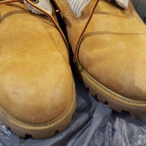 #162 Timberland Ladies Light Brown boots Size 8.5M Women's corduroy roll up tie up