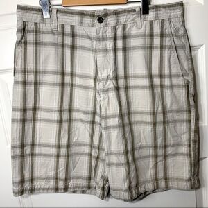 TIMBERLAND preppy neutral plaid cotton bermuda shorts relax fit 4 pockets sz 36