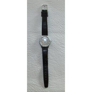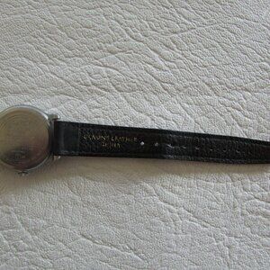 Silver-tone case and black leather strap - can still read Genuine Leather