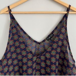 TIMING Women’s Classic Sheer Navy Pattern shell blouse Large