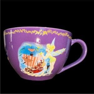 Disney Store Tinkerbell large capacity mug. Two-tone purple with Tinkerbell/Peter Pan theme on both sides. In pristine condition with no chips scratches or cracks