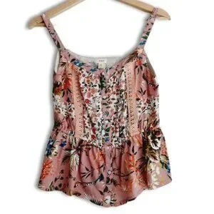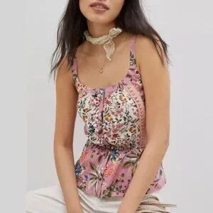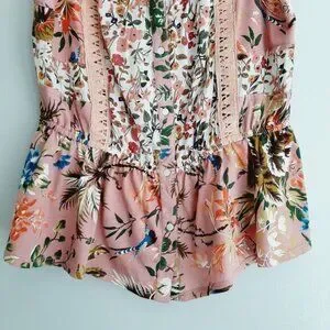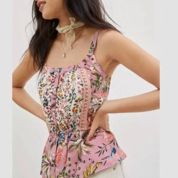 TINY / Anthropologie Thea Peplum Tank Top Pink Floral Sz XS Flawed