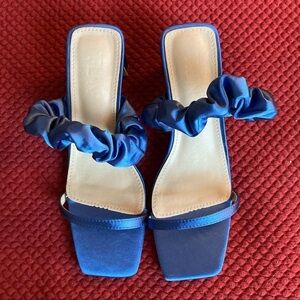 TJIN Blue Satin Heel Slide On Sandals Square Toes Elastic Top Strap NWT Sz 8. Gorgeous and comfortable. Perfect for a party, wedding, festivity, date night. Stylish and trendy. Heel: 2.5”.