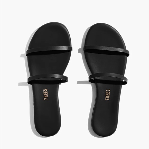 Chic TKEES slide sandals in a versatile black. Ideal for everyday comfort. In good pre-owned condition, very minor scuffs as shown.