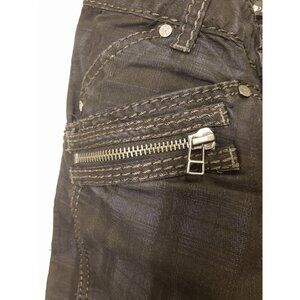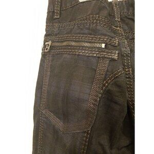 These pre-owned Kosmo Lupo men's jeans are perfect for clubwear. With a mid-rise, straight fit and stretch material, they provide both style and comfort. The black denim fabric adds a sleek touch, while the zipper closure and zipper pockets make them practical for a night out.