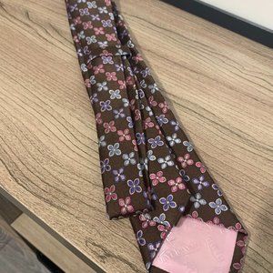TM LEWIN Brown Blue Pink Floral Silk Neck Tie