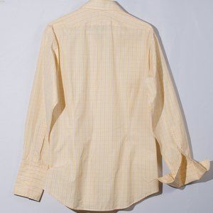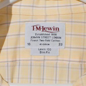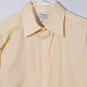 T.M. Lewin Men's Dress Shirt 16-33 Yellow Windowpane Cotton French Cuff