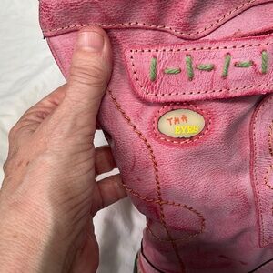 TMA Eyes Pink Leather Green Trim Lace Up Boots (EU size 37)