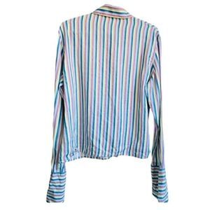 T.M.Lewin Classic Striped Button Shirt. With Cuff links or foldable. EUC. Size UK 18 or XL US. Measurements below.