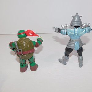 This Teenage Mutant Ninja Turtles Lot Includes the 2015 Turbo Charge Transforming Car, T-Machines Turbo Guide Book which includes over 30 Stickers and 2 Figures ( 2012 Raphael 4.5" Figure and 2002 Shredder 5.5" Figure) all in good clean condition.