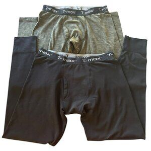 T-Max Mens Merino Wool Base Layer Pants x 2 Green Black Sz L Elastic Waist