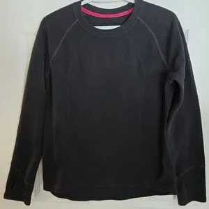 T-Max Cozy black sweatshirt with pink stitching. Perfect for cold days as a second layer. comes from smoke and pet free home item will be laundered before shipping