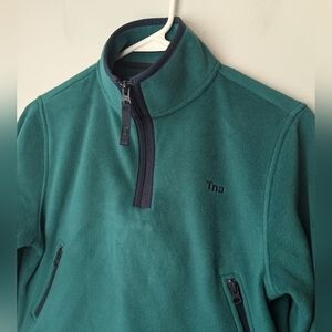 TNA ARITZIA CROP Sweater Size 2XS Green And Navy Blue Color Zipped Pockets