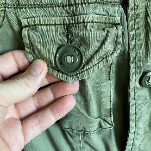 TNA ARITZIA Women's Military Khaki Green Cargo Zip Up Jacket with Hood Medium