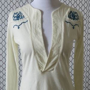 TNA Aritzia Embroidered Braided Long Sleeve Tunic Top Blouse - Size Small