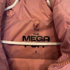 TNA Aritzia Goose Down Mega Puff Pink Puffer Jacket Coat Relaxed Fit Size Small