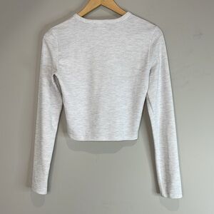 This stylish gray top from TNA features a fitted, cropped design with long sleeves, perfect for a modern and minimalist look.