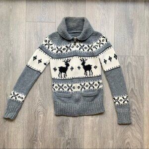 TNA Aritzia Sea To Sky Cardigan Sweater wool zip up Cowichan knit Fair isle S