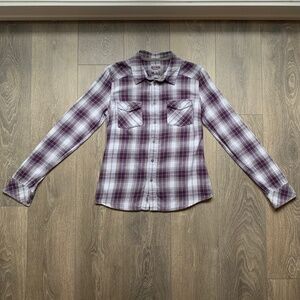 TNA Aritzia Women's Button Down Shirt Plaid Flannel Shirt Classic Purple Size S