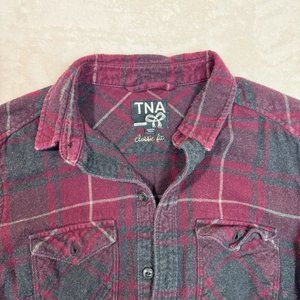 TNA Aritzia Women's XS Classic Fit Red & Black Plaid Flannel Shirt Button Down