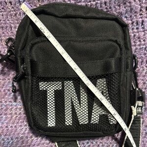 Compact and sporty, this TNA mini crossbody bag is perfect for hands-free convenience. Features a zippered main compartment, front mesh pocket, and adjustable logo strap for a streetwear-inspired look. Details: • Brand: TNA • Color: Black • Adjustable logo strap • Front mesh pocket • Zip closure • Compact size – ideal for essentials Condition: • Excellent pre-owned condition; minimal wear (see photos) • Zippers function smoothly • Interior clean and intact Style It With: • Denim jacket and leggings for a casual day out • Athleisure wear for errands • Festival outfits for a trendy, functional touch #TNA #CrossbodyBag #MiniBag #Streetwear #Athleisure #TravelBag