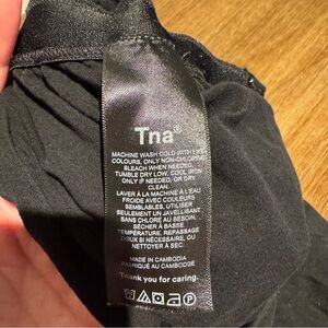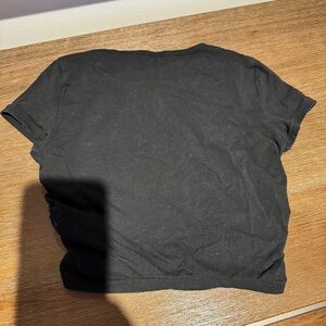 Sleek black tee with short sleeves. Features subtle side detailing. Ideal for casual wear.