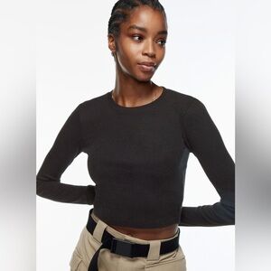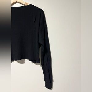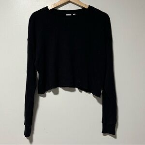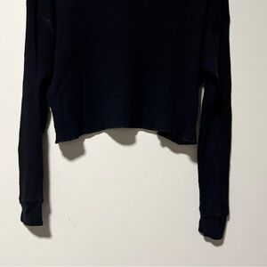 TNA Black Waffle Knit Cropped Long Sleeve – Size M, Cozy Thermal Pullover