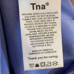 This TNA cropped baby tee features a blue and white color scheme with bold varsity-style numbers for a sporty, retro vibe. Its fitted cut and soft fabric make it perfect for casual, everyday wear.