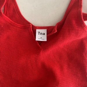 Waffle knit, cherry red, cropped TNA tank (from Aritzia). Perfect condition, only worn once or twice.