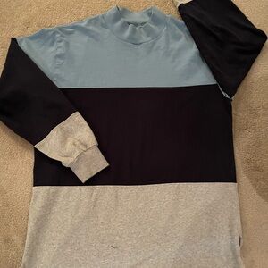 TNA colorblock long sleeve shirt with blue, black, and gray sections. Perfect for casual wear in size 2XS but is oversized and could fit a small.