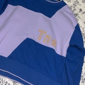 TNA sweatshirt with a striking colorblock design. Features blue and lavender panels with a bold TNA logo. - Very oversized tna sweatshirt in size 2 (fits oversized M/L)