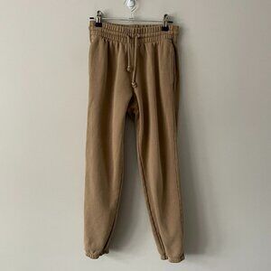 TNA Cozy Fleece Boyfriend Sweatpants Mid Rise Waist Casual Tan 2XS : Used and in good used condition