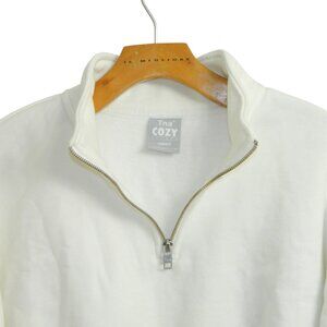 Details: This listing is for a pre-loved Bright White Cozy Fleece Perfect Oversized Cropped ½ Zip-up Long Sleeve Sweatshirt by “TNA” in a size Medium