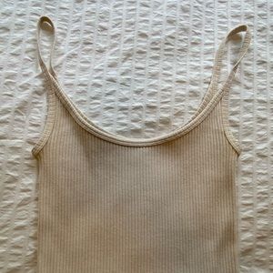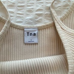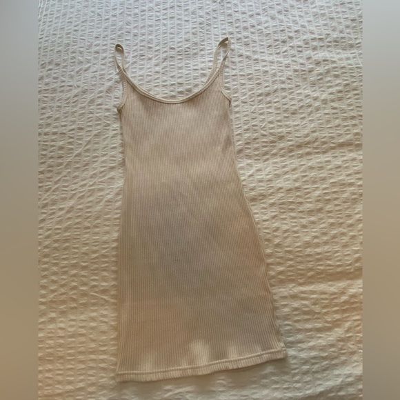 TNA cream ribbed mini dress w spaghetti straps