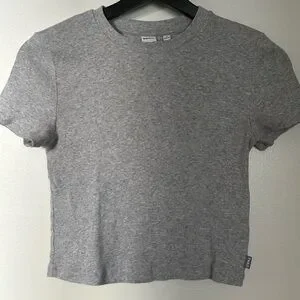 Heather gray ribbed short sleeve tee by TNA. Crew neckline with cropped fit. Size S