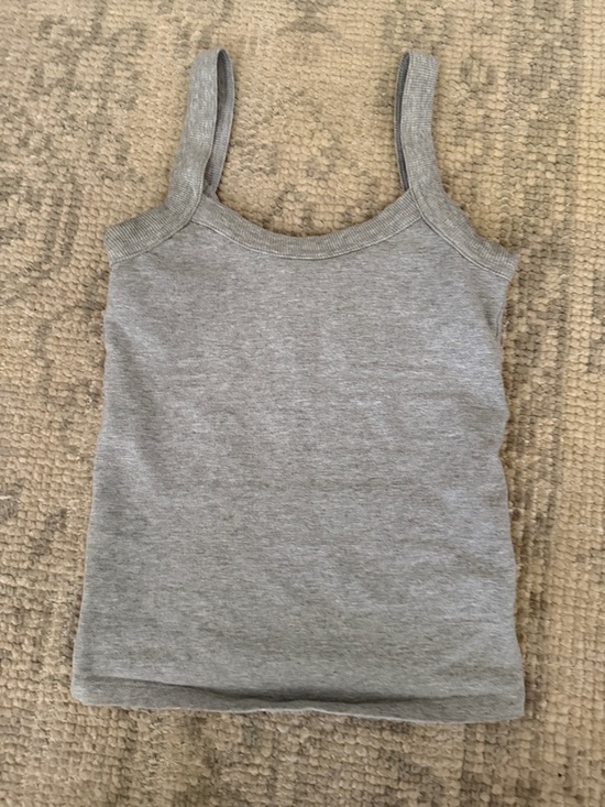 Classic ribbed tank with thin straps. Soft stretch fabric. Simple scoop neck. Versatile everyday staple.
